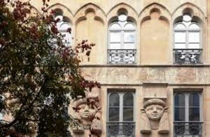Cet immeuble ancien se trouve dans la rue Richelieu. Placez-vous sur la place André Malraux pour l’admirer en prenant du recul.