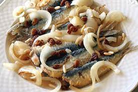Les influences moyen-orientales se ressentent aussi dans les sardines à la saor avec les raisins secs et les pignons de pin. Ils amènent une saveur plus douce et du croquant à la préparation.