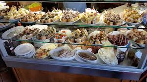 La plupart des restaurants de Venise en proposent en entrée. Tu trouveras surtout des polpette et quelques tartines aux rillettes poissons. Pour goûter les VRAIS cicchetti à des prix défiants toute concurrence, il faudra aller dans un bacaro. C’est souvent un petit établissement où il n’est pas possible de s’asseoir. Il y a peu de tables et elles sont généralement réservées aux personnes âgées. On y mange donc debout au bar, autant être prévenu. Les cicchetti sont vendus à l’unité pour des prix compris entre 1,50 € et 2,50 €. Par ailleurs, il est de bon ton d’accompagner ses cicchetti d’un verre de vin ou de Spritz, boisson vénitienne par excellence ! Tu trouveras également des cicchetti dans les bacari, les bars à vins de Venise.