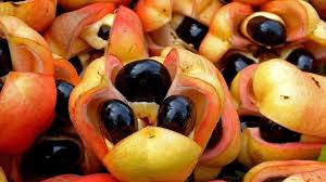 L’akée appartient à la famille des Sapindacées, ce qui en fait un cousin du litchi, du ramboutan et du longane. Originaire d’Afrique de l’Ouest, il a été introduit dans les Caraïbes au XVIIIe siècle et est rapidement devenu un aliment de base. Ses gousses rouge vif et ses graines noires et brillantes en font l’un des fruits les plus remarquables des tropiques. Doit être parfaitement mûr sinon il est toxique. Goût beurré, souvent mangé avec du poisson salé