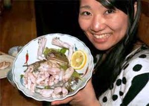 Description : Grenouille préparée et servie crue, parfois encore frémissante.