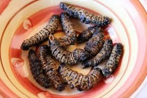 Description : Chenilles de papillon mopane, séchées ou frites.
