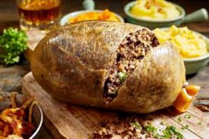 Description : Boulette géante de pommes de terre râpées, farcie de viande et bouillie.