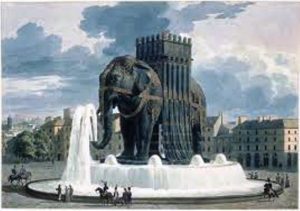 À l’origine (début XIXème siècle), ce diable de Napoléon Bonaparte, encore lui, voulait construire sur la place de l’Étoile un éléphant géant.