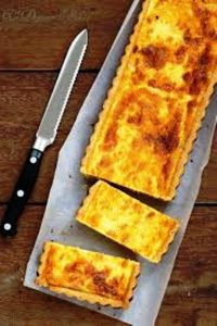 Les divers ingrédients utilisés pour réussir la recette sont : Répartir sur un fond de pâte brisée 100 g de jambon blanc coupé en dés et 50 g de comté râpé, puis 12,5 cl de lait + 12,5 cl de crème liquide + 2 oeufs entiers et 1 jaune + 1 c. à s. de moutarde Savora + sel. Cuire 35 mn à 180 °C (th. 6).