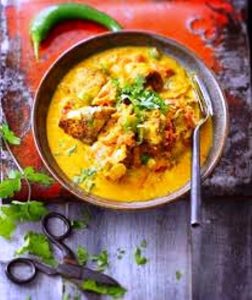 Les divers ingrédients utilisés pour réussir la recette sont : Faire mariner pendant 2 h 1 poulet en morceaux avec 1/2 ananas en dés. Faire rissoler 2 oignons émincés + 30 g de pâte de curry vert + 20 g de gingembre frais. Ajouter le poulet, 40 cl de lait de coco, le zeste d’un citron combava et 2 tiges de citronnelle. Laisser mijoter 40 mn, ôter la citronnelle et mixer la sauce. Ajouter hors du feu 20 g de gingembre, de la coriandre ciselée et les dés d’ananas.