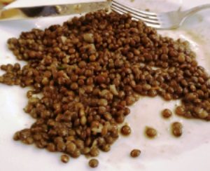 Mon entrée arrive, le maître d’hôtel me sert mon entrée une salade de lentilles vertes du Puy à partir d’un grand saladier, c’est appétissant et très bien assaisonné.