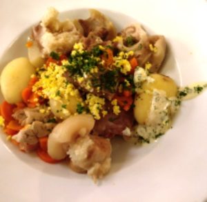 Mon accompagnateur choisis sur la carte : la tête de veau « Vieille France », sauce ravigote (24€).