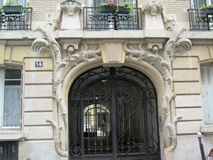 Au 14 rue de l’Abbé de l’Épée 75005 un portail à la décoration florale
