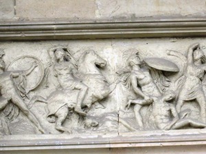 Un bas-relief d’une bataille au 8 rue Henri Barbusse 75005