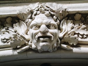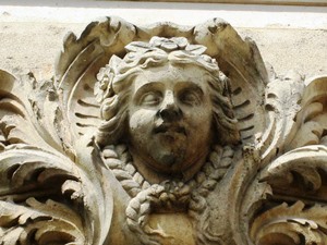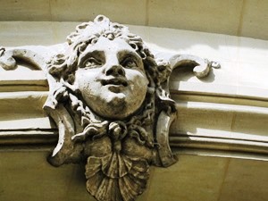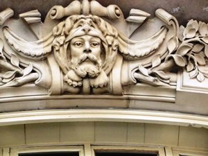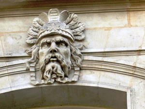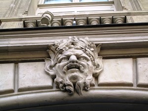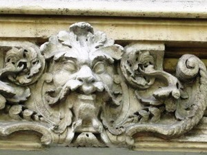 Sur le fronton du 90  rue de Grenelle 75007  une curieuse tête d’homme3GRENELLE90