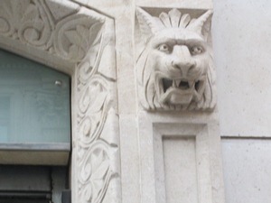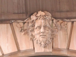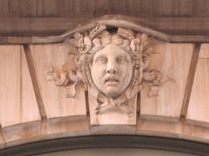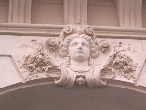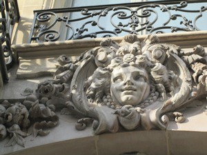 Une tête de femme sur le portail du 11 bis rue Scribe 75009