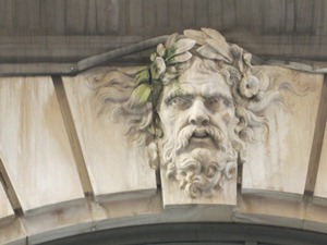 Une sculpture sur la façade du Printemps boulevard Haussmann 75009