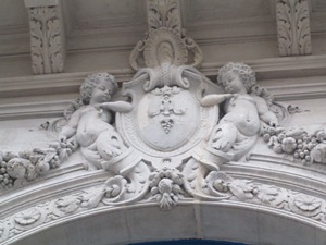 Un couple d’angelots veille sur l’entrée du 7 rue Scribe 75009