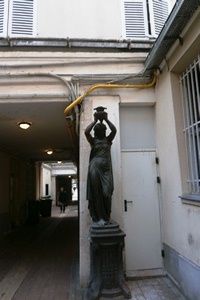 Bien caché dans un passage de la rue du faubourg Saint Denis 75010 une fontaine, une sculpture