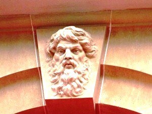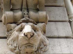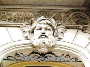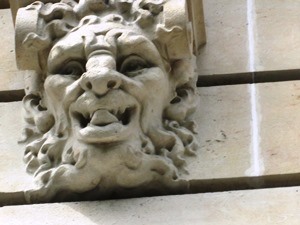 Sur la façade du 53 avenue Matignon 75008 une tête d’homme et une de lion