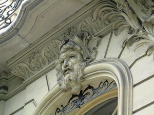 Sur la façade du 57 avenue Matignon 75008 une série de têtes fantasmagoriques