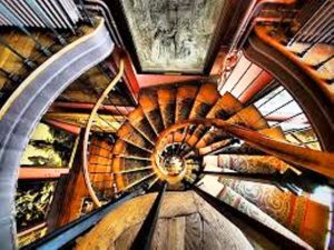Escaliers en colimaçon, murs saturés de toiles : un labyrinthe d’images mythologiques et mystiques.