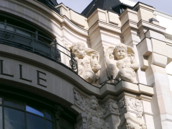 Sur la façade du BHV MARAIS un couple d’angelots