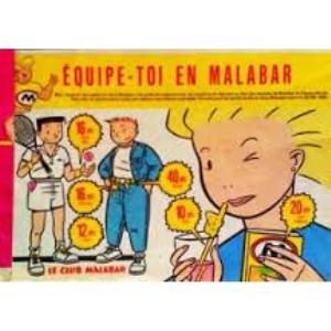 Malabar est une marque française de chewing-gum lancée en 1958 par la société Kréma.En 1959, la marque lance les premières vignettes mais ce n’est qu’en 1969 qu’y apparaît le célèbre blondinet vêtu d’un maillot jaune et arborant sur le torse un « M » entouré d’un ovale rouge.Ses aventures se sont longtemps déclinées sur des vignettes contenues dans l’emballage, sous la forme de courtes bandes dessinées.De très nombreux dessinateurs se sont succédé pour la création des vignettes.