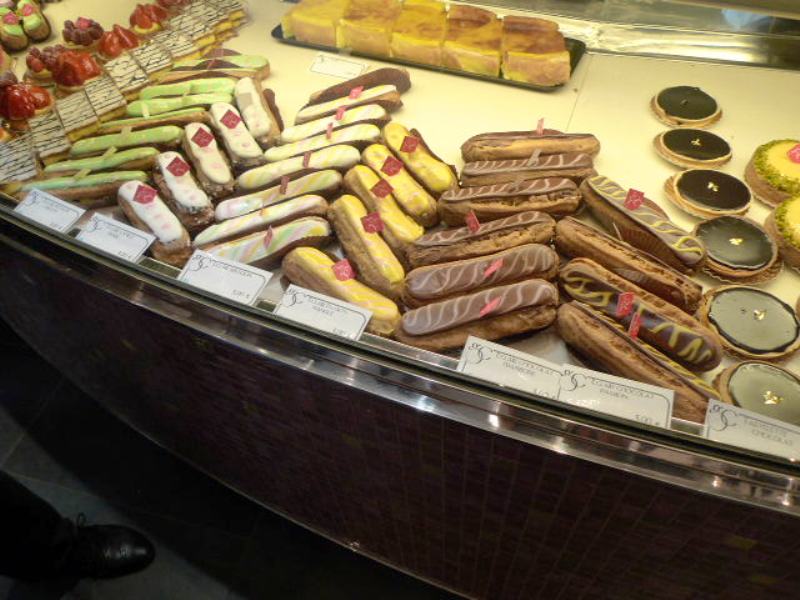 Mais mon regard se portent sur les vitrines où de nombreux gâteaux mais ce qui me surprend c’est la multitude d’éclairs sagement alignés UN VRAI CHOC.