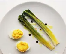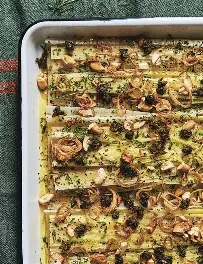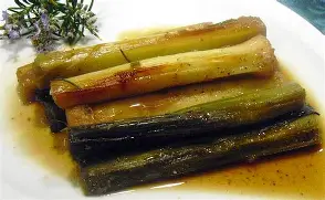 Poireaux brûlés, Saint-Maure, noix et romarin