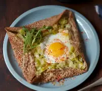 Les divers ingrédients utilisés pour réussir la recette sont : tranches de pain aux fruits secs, brie, gros poireaux, beurre, moutarde en grains, crème épaisse, gros champignons de Paris, herbes fraîches…