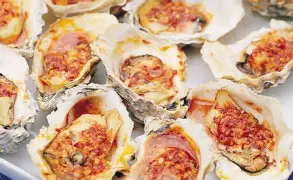 Huîtres grillées, fondue de poireau au gingembre, blette