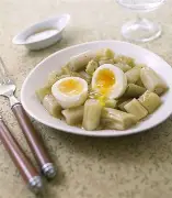 Salade de poireau et betterave crus, oeufs mollets et herbes