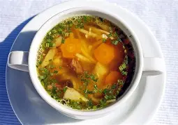 Les divers ingrédients utilisés pour réussir la recette sont : reste de poulet rôti, poireaux émincés, blanc et vert séparés, extrémités réservées, oignon émincé en larges rondelles, branches de thym, branches de romarin, feuille de laurier, pruneaux, dénoyautés, coupés en 2 ou en 4, persil plat ciselé, thym ciselé…