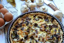 Les divers ingrédients utilisés pour réussir la recette sont : poireaux moyens, champignons de paris, pâte brisée, crème liquide, œufs, tomme de brebis, noix de muscade moulue, brins de thym, huile d’olive…