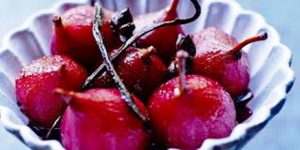 Les divers ingrédients utilisés pour réussir la recette sont :poires pas trop mûres, sucre en poudre,  pistaches non salées décortiquées, cannelle en poudre, clou de girofle, vin rouge,