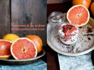 Les divers ingrédients utilisés pour réussir la recette sont : sucre, œufs, beurre, crème liquide très froide, jus de pamplemousse frais, Maïzena®…