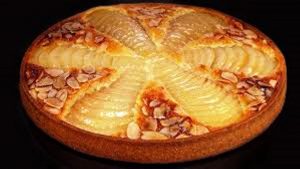 Les divers ingrédients utilisés pour réussir la recette sont : rouleau de pâte sablée, poudre d’amandes, poires mûres, amandes effilées…