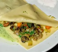 Raviolis d’escargots aux herbes sauce crème aux noix