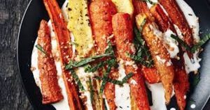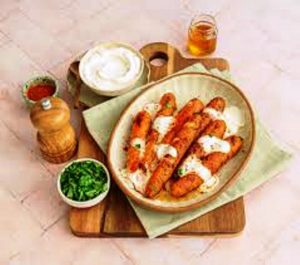 Les divers ingrédients utilisés pour réussir la recette sont : carottes, Maïzena, huile d’olive, parmesan râpé, paprika fumé, ail semoule, yaourt à la grecque, persil plat, sel, poivre…