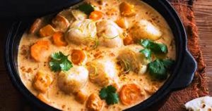 Les saveurs exotiques de ce curry de noix de Saint-Jacques vont envahir votre cuisine ! Parfumé à la crème de coco et au gingembre, ce plat mijoté sera parfait pour profiter de la saison des coquilles.