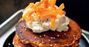 Les carottes se dégustent aussi au sucré ! La preuve avec cette recette de pancakes inspirée du fameux gâteau anglais, le carrot cake. Ils sont préparés avec des carottes râpées, de la cannelle, du gingembre et de la muscade puis servis avec un glaçage au fromage frais. De quoi profiter d’une pause gourmande pleine de douceur.