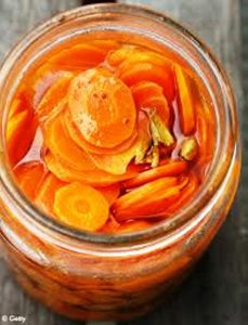 Les divers ingrédients utilisés pour réussir la recette sont : carottes, gousses d’ail, poivre noir en grains, graines de moutarde jaune et noire, graines de coriandre, vinaigre de cidre, sucre, gros sel…