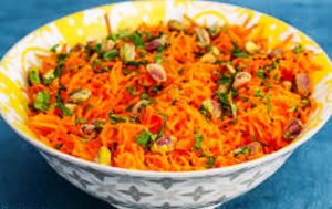Les divers ingrédients utilisés pour réussir la recette sont : carottes, bouquet de coriandre ou de persil frais, pistaches, feta…