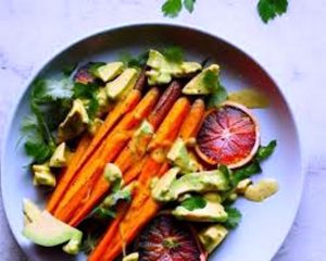 Salade de carottes rôties avocat vinaigrette d’agrumes