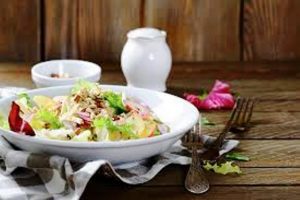 Ingrédients: noisettes mondées, pamplemousse blanc ou rose, crème fraîche, jus de citron frais Meyer, échalote finement hachée, sumac, sel, poivre, salades de toutes variétés : romaine, rougette, laitue etc, chou-rave de taille moyenne pelé et râpé, mélange d’herbes aromatiques (menthe, persil, etc)