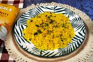 Ingrédients: riz basmati, dés de tomates au naturel (en conserve), feuilles de coriandre ciselées, gousses d’ail, oignons, clou de girofle, gingembre frais, coriandre moulue, cumin moulu, curcuma moulu, cannelle moulue, piment fort moulu (selon le goût), curry moulu, beurre clarifié, huile, sel…
