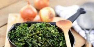 Ingrédients: beaux choux kale, oignons hachés, persil, huile d’olive, paprika, eau, sel, poivre…