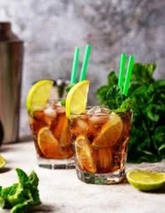 Les divers ingrédients utilisés pour réussir le cocktail sont : Coca-Cola, rhum, citron vert…