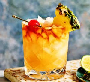 Les divers ingrédients utilisés pour réussir le cocktail sont : rhum ambré, ananas, jus d’orange, jus de citron vert pressé et filtré, sirop de grenadine…