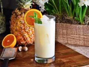 Les divers ingrédients utilisés pour réussir le cocktail sont : jus d’ananas, rhum blanc, crème de noix de coco…
