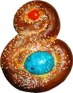 Il n’est pas impossible que vous trouviez également sur la table un pain tressé et brioché aux éclats d’amandes nommé Tsoureki. Souvent, ce pain brioché est garni d’oeufs durs dont la coquille a été peinte en rouge, symbolisant le sang du Christ.