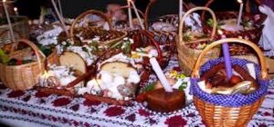 Le jour de Pâques, les fidèles se rendent à l’église et assistent à une cérémonie religieuse, à la fin de laquelle ils font trois fois le tour de l’église, accompagnés d’un cierge allumé. Ils font bénir leurs œufs et même leur koulich.