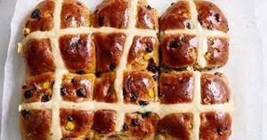 C’est le jour où l’on déguste des hot cross buns : de délicieux petits pains briochés sucrés, aux épices, garnis de raisins secs et parfois de zestes d’agrumes. Chaque petit pain est décoré d’une croix blanche qui représenterait la croix sur laquelle Jésus a été crucifié.